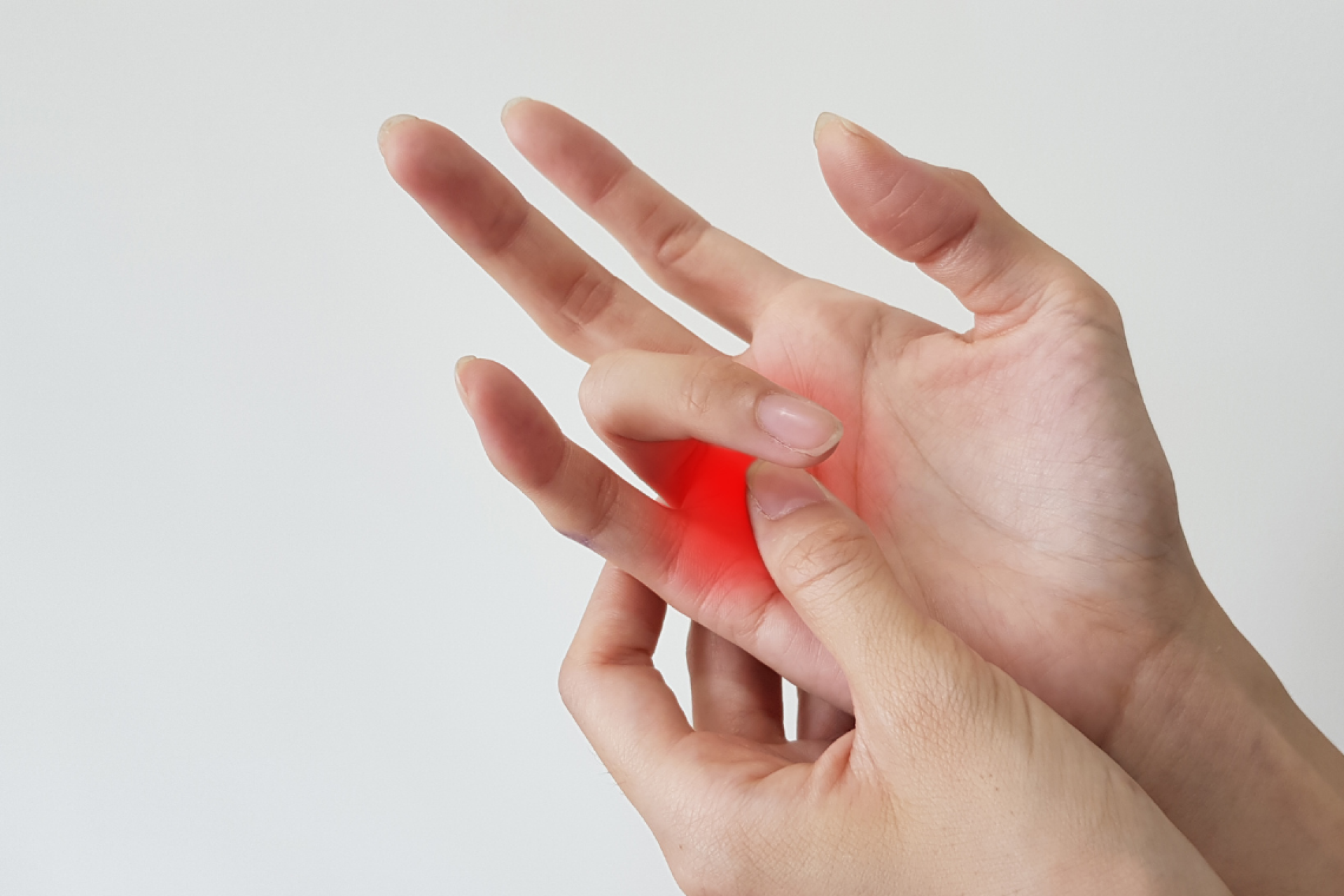 อาการ: รู้สึกตึงหรือรู้สึกไม่สบายที่ฐานของนิ้วมือ ถ้ากดบริเวณฐานนิ้วมือจะมีอาการปวดมากขึ้น