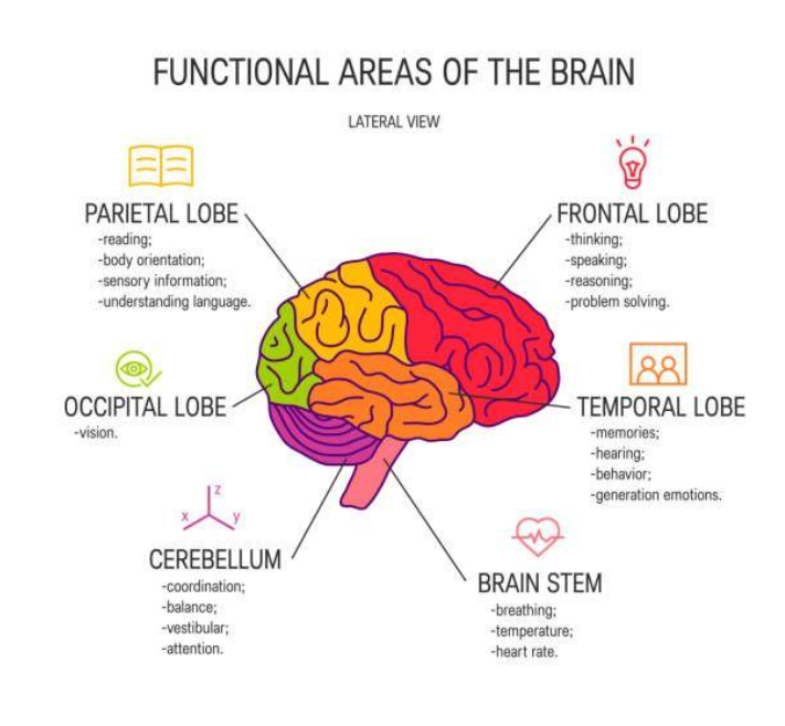 ตำแหน่งที่ 3 : บริเวณสมองส่วนข้างด้านหลัง ทำหน้าที่เกี่ยวกับการรับรู้และการตอบสนองต่อสิ่งแวดล้อมต่าง ๆ การมีปฏิสัมพันธ์และการเข้าสังคม