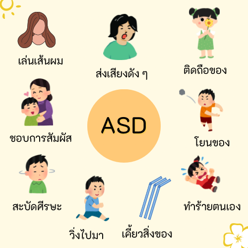 5. ทำร้ายตนเองเมื่อเกิดความไม่พอใจ เช่น นำศีรษะโขกกำแพง ทุบอก ตี หยิก ข่วน นอนทิ้งตัวกับพื้นแรง ๆ