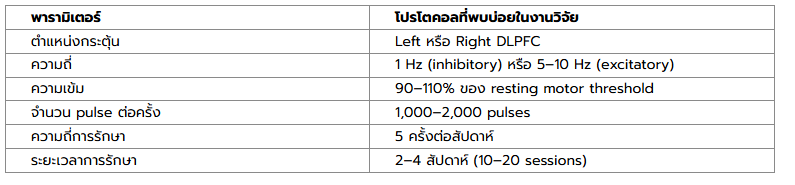 ตัวอย่างโปรโตคอล rTMS ที่ใช้ในการวิจัย ADHD