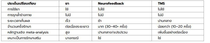 เปรียบเทียบแนวทางการรักษา ADHD: TMS vs ยา vs Neurofeedback